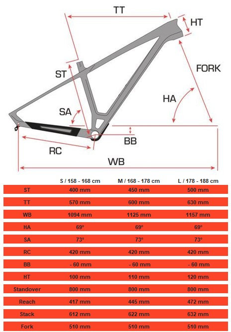 Už na prvý pohľad je zrejmé, že ide o XC hardtail tej najvyššej kvality. Bicykel zaujme mimoriadne nízkou hmotnosťou a vysokou tuhosťou, ktorú zabezpečuje použitie prvotriedneho karbónu. Konštrukčným detailom je vzpera nad stredovým zložením, ktorá zvyšuje tuhosť v oblasti spojenia sedlovej a spodnej rámovej trubky a výrazne prispieva k efektívnemu prenosu energie.